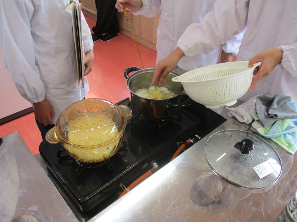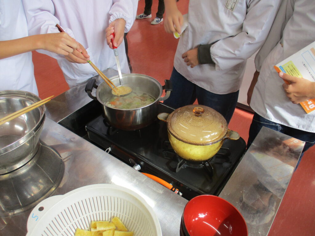 5年生が、ご飯とみそ汁を作りました。保護者の方もたくさんのアドバイスをありがとうございました。