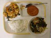 コロッケ、厚揚げのピリ辛炒めでした。