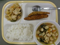 ししゃもの磯部フライ、おふのみそ汁でした。