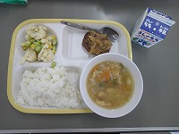 今日の給食 2026年4月28日 最終更新日時 : 2026年4月28日 kumagaya_edit 今日の献立は、ごはん、じゃが芋と油揚げのみそ汁、 カリフラワーのサラダ、和風きのこハンバーグ、 ごまドレッシング、牛乳でした。