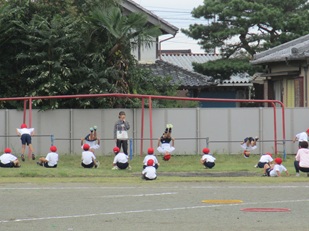 体育の授業で鉄棒遊びを行っています。