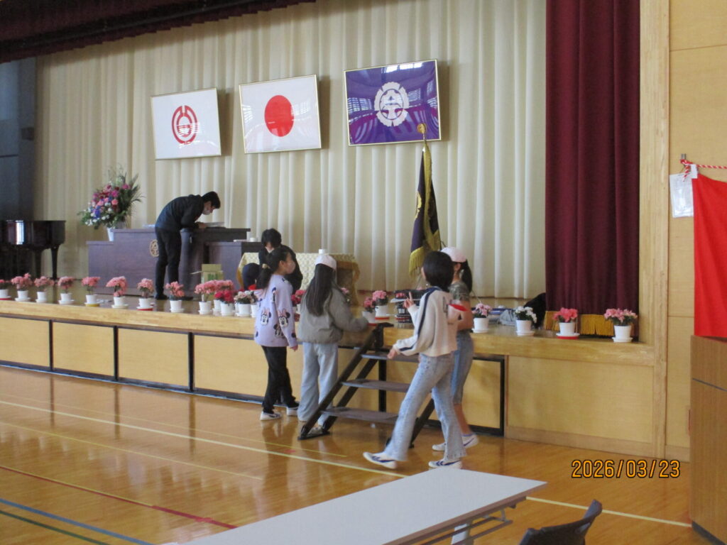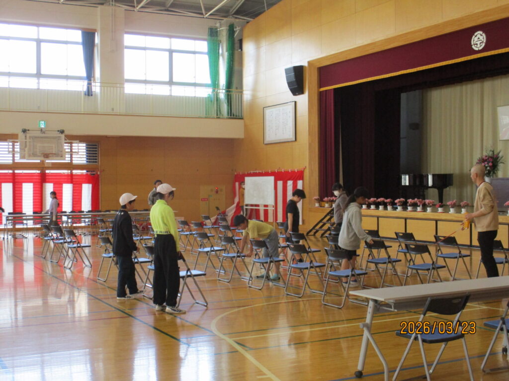 卒業式準備 2026年3月23日 最終更新日時 : 2026年3月23日 kumagaya_edit 明日の卒業式に向け、5年生が準備を行いました。隅々まで掃除したり、会場をきれいに整えたり、もう立派な最上級生です。