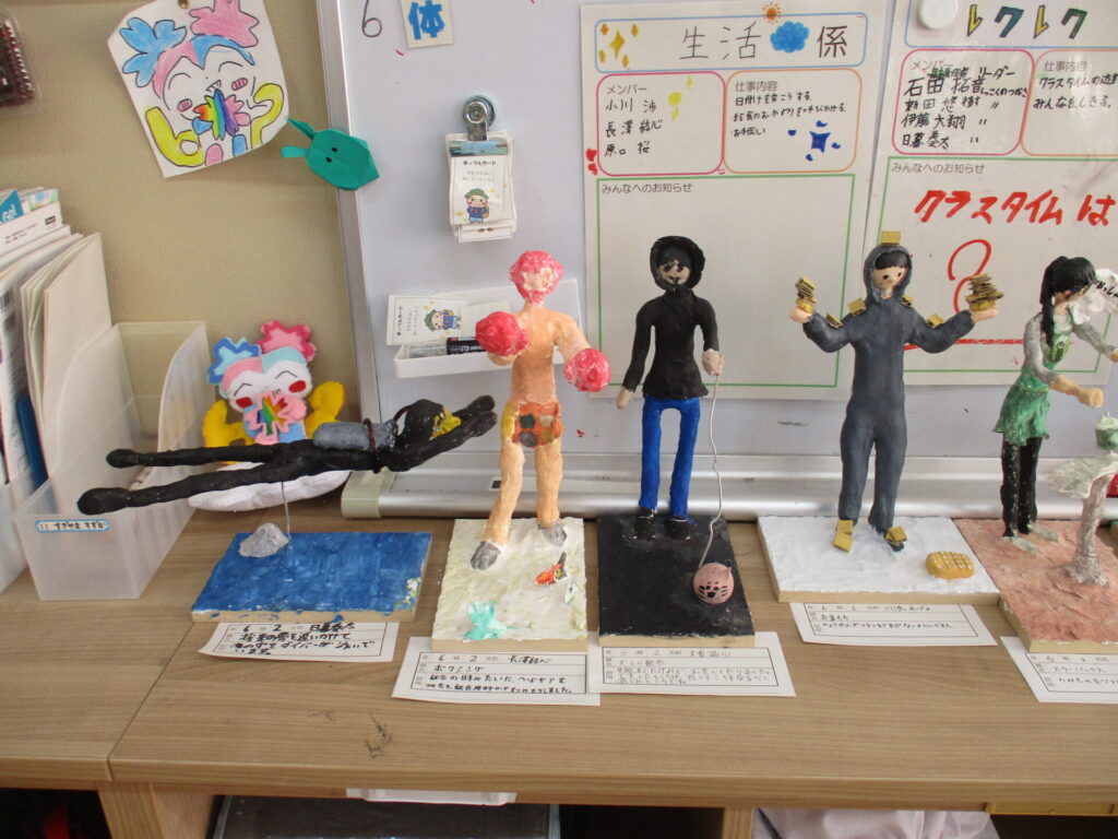 紙粘土を使用した作品も完成間近になりました。