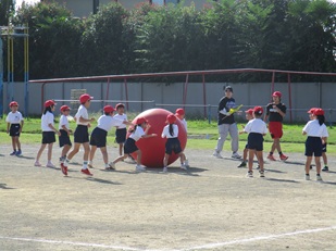 大玉送り 2025年9月25日 最終更新日時 : 2025年9月25日 kumagaya_edit 全校種目の「大玉送り」の練習を行いました。走路に沿って転がすことと、ゴール地点で台の上にスムーズにボールを置くことがポイントになりそうです。