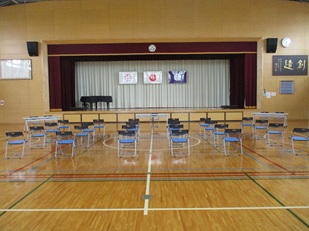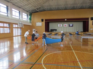 明日の就学時検診に向け、5年生男子が会場設営を行いました。