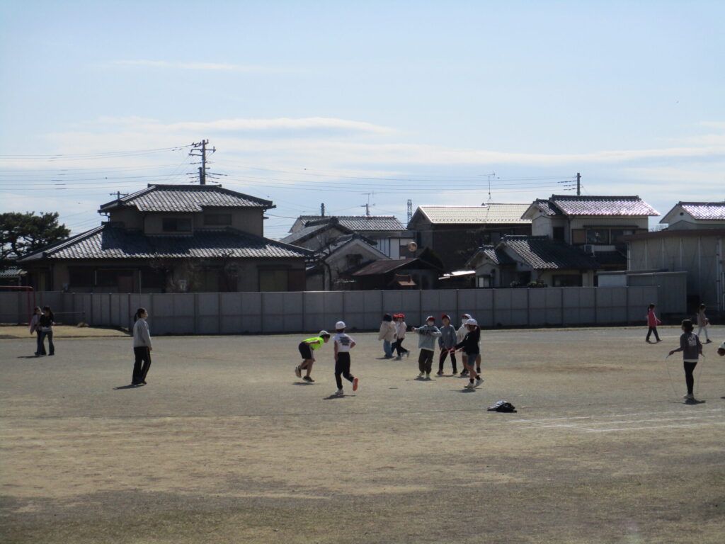 穏やかな天気となり、校庭で元気に遊ぶ子どもたちが多く見られました。