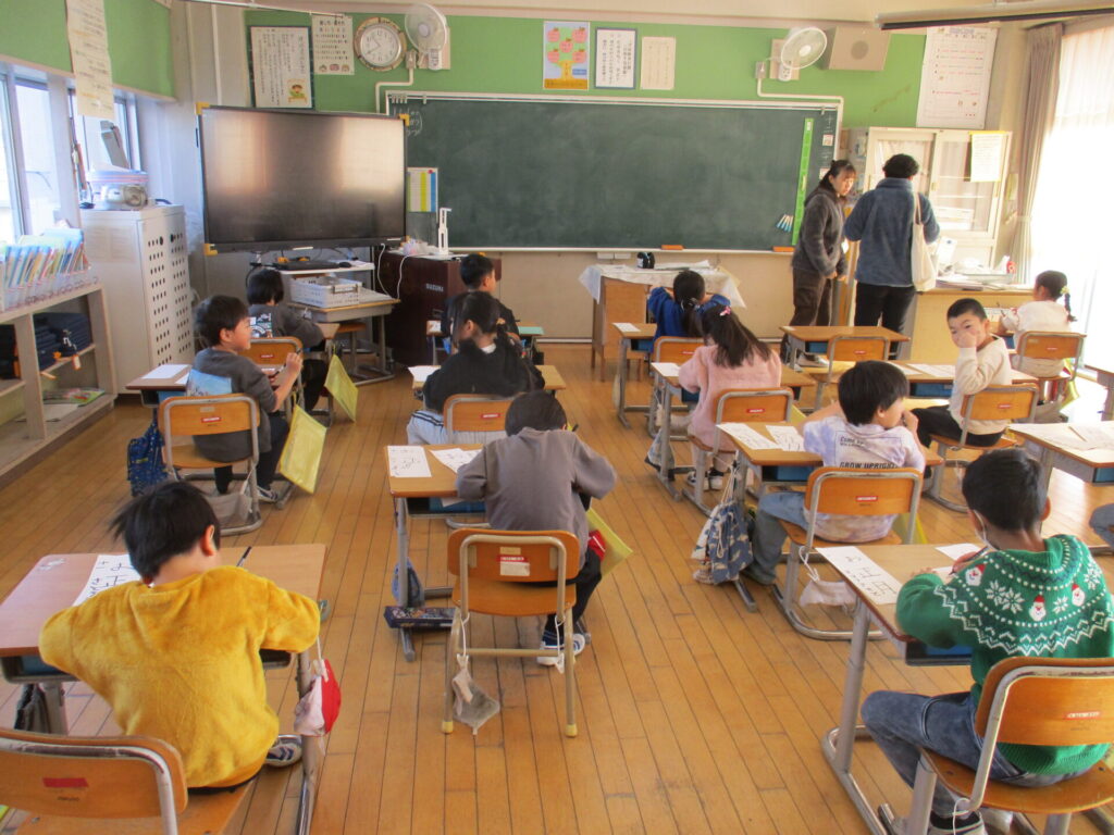 ネームペンを使い、「お正月」を紙いっぱいに大きな字で書きました。
