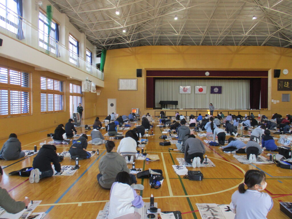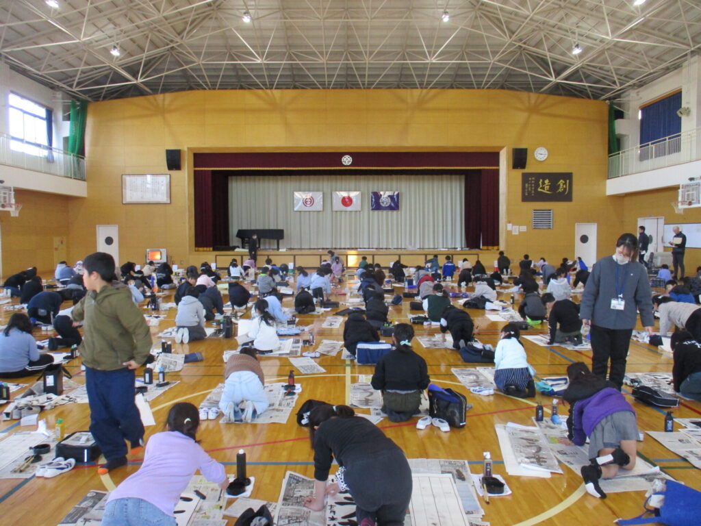 清書会 2026年1月8日 最終更新日時 : 2026年1月9日 kumagaya_edit 3年生~6年生は体育館、1.2年生は各教室で「書きぞめ清書会」を行いました。一文字ずつ丁寧に書く姿が見られました。