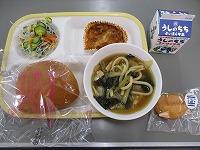 熊谷市誕生20周年プレミアム給食! 2025年10月15日 最終更新日時 : 2025年10月15日 kumagaya_edit ブルーベリークリームパン、牛乳、 熊谷誕生うどん、さっぱりサラダ、 ラグビーかぼちゃのミートソースグラタン、 くまがやマドレーヌでした☆