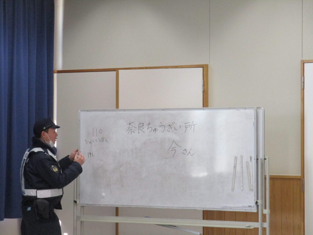 社会(3年) 2026年1月22日 最終更新日時 : 2026年1月23日 kumagaya_edit 「事故や事件からくらしを守る」の単元で、奈良駐在所の今さんに来校していただき、警察の仕事内容などについてお話しいただきました。