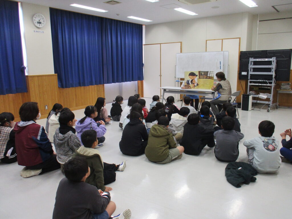 読み聞かせ(4年) 2025年12月12日 最終更新日時 : 2025年12月12日 kumagaya_edit 「ひばりの会」の皆様に来校していただき、読み聞かせを行いました。子どもたちは、大型の紙芝居を前に、物語にひきこまれるように夢中になって話を聞いていました。