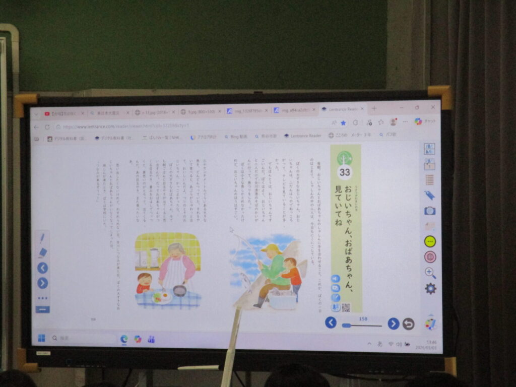 道徳(3年) 2026年3月5日 最終更新日時 : 2026年3月5日 kumagaya_edit 「おじいちゃん、おばあちゃん、見ていてね」の題材を通して、受け継がれる命や生命の尊さなどについて考えました。