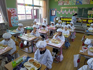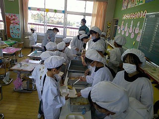 1年生の初めての給食 2026年4月16日 最終更新日時 : 2026年4月16日 kumagaya_edit 1年生は、今日が初めての給食でした。慣れるまでは、6年生に配膳してもらい、早めに給食を食べ始めるようにしています。
