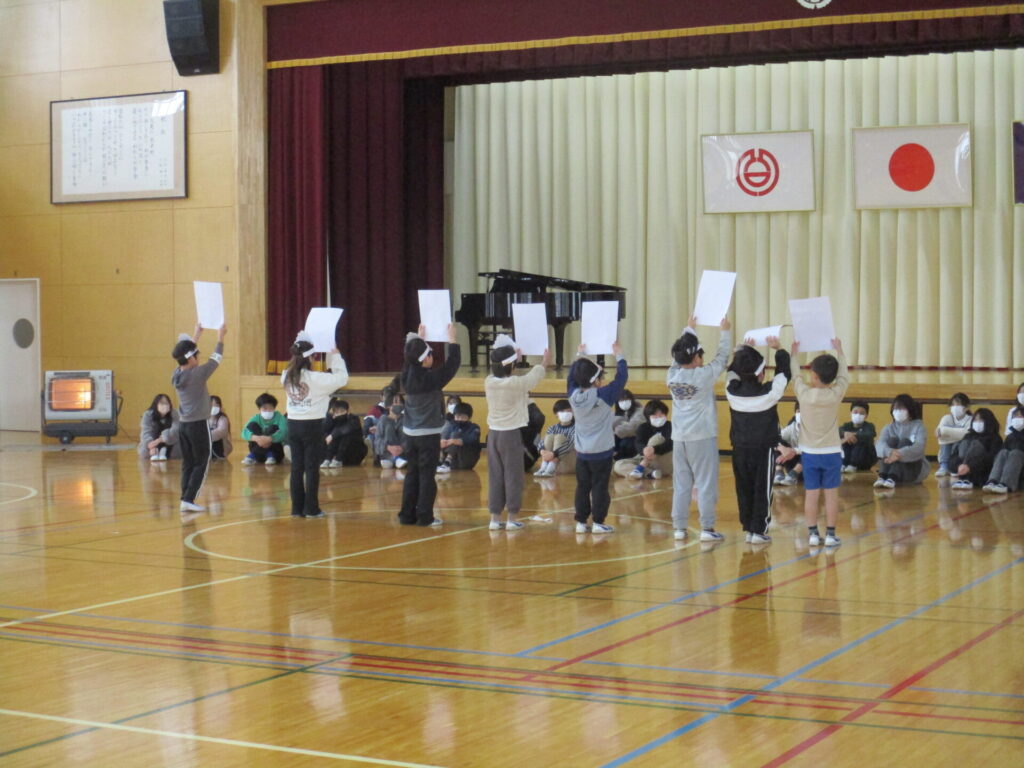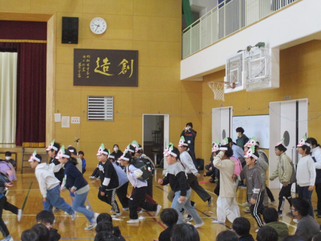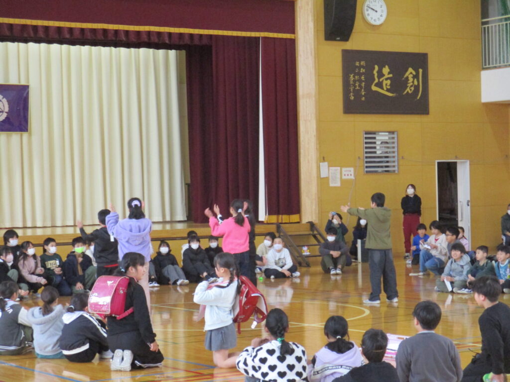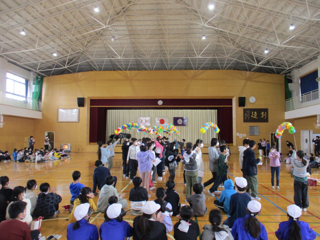 2校時に体育館で行いました。1年生は歌やクイズ、2年生はヒップホップの曲に合わせたダンス、3年生は息ぴったりのダンス、4年生は各グループで考え趣向を凝らした劇やエール、5年生の様々な思い出とともに迫力あるダンス等を披露しました。6年生もリズム縄跳びやダンス等、子どもたちの手作りで、心温まる出し物や発表でした。